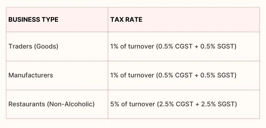 It’s meant for traders, small manufacturers, and certain restaurants with a turnover of up to ₹1.5 crore (₹75 lakh in some states), but it comes with restrictions like no inter-state sales and no input tax credit.