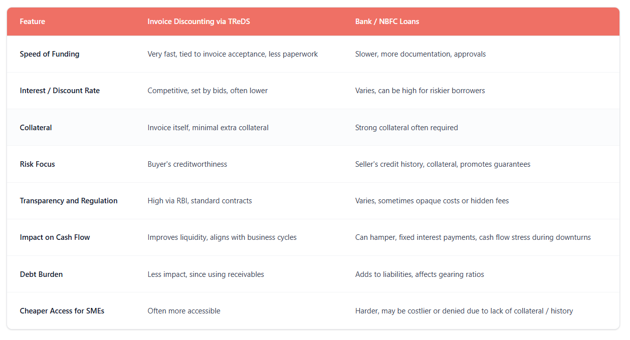 Comparison Table: TReDS Invoice Discounting vs Bank/NBFC Loans